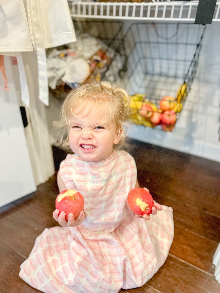 When you’re hungry, you’re hungry. Apple thief! I knew someone was sneaking fruit out of the pantry!