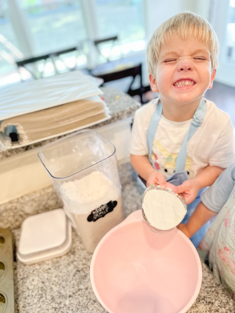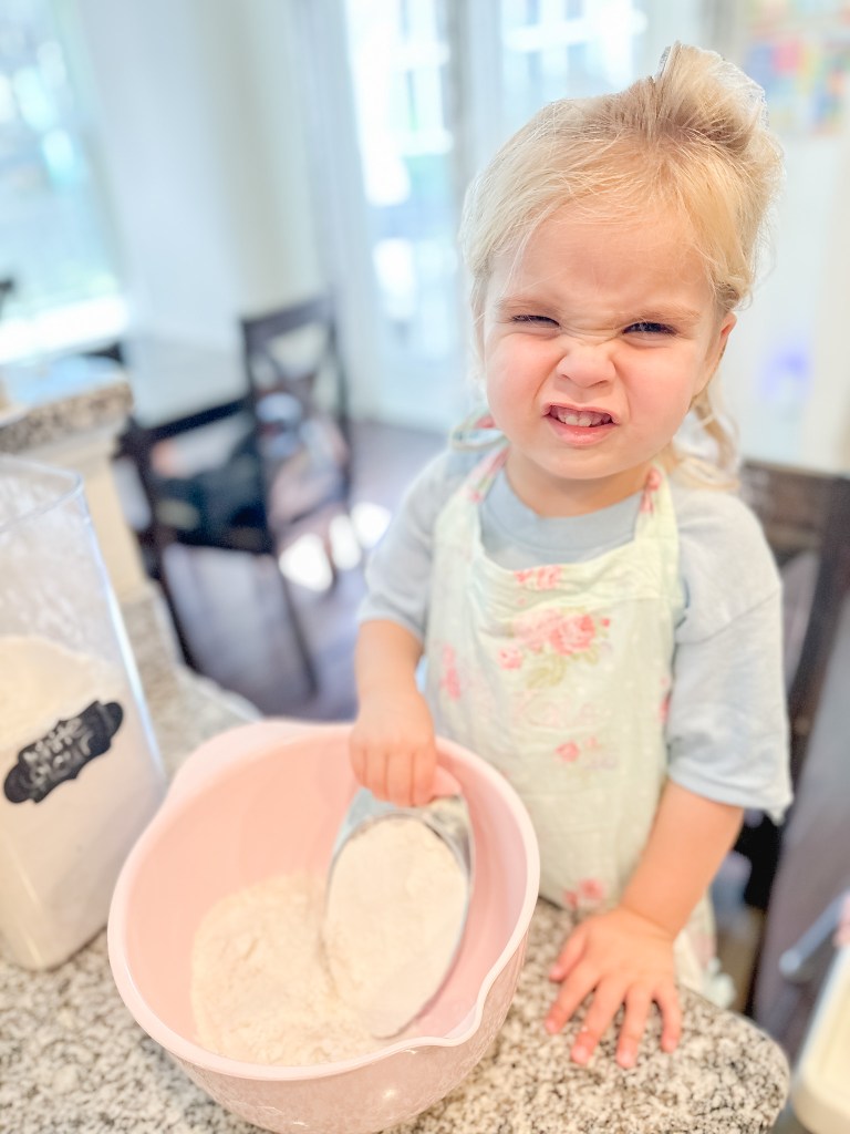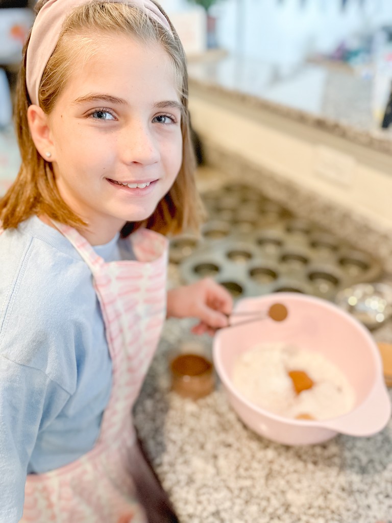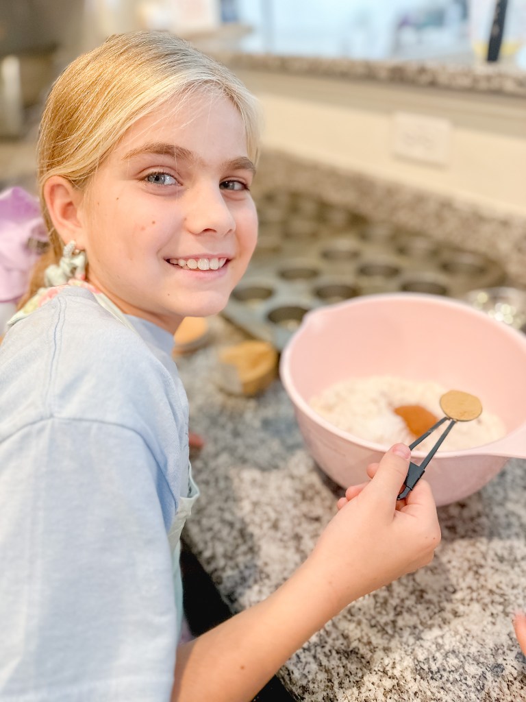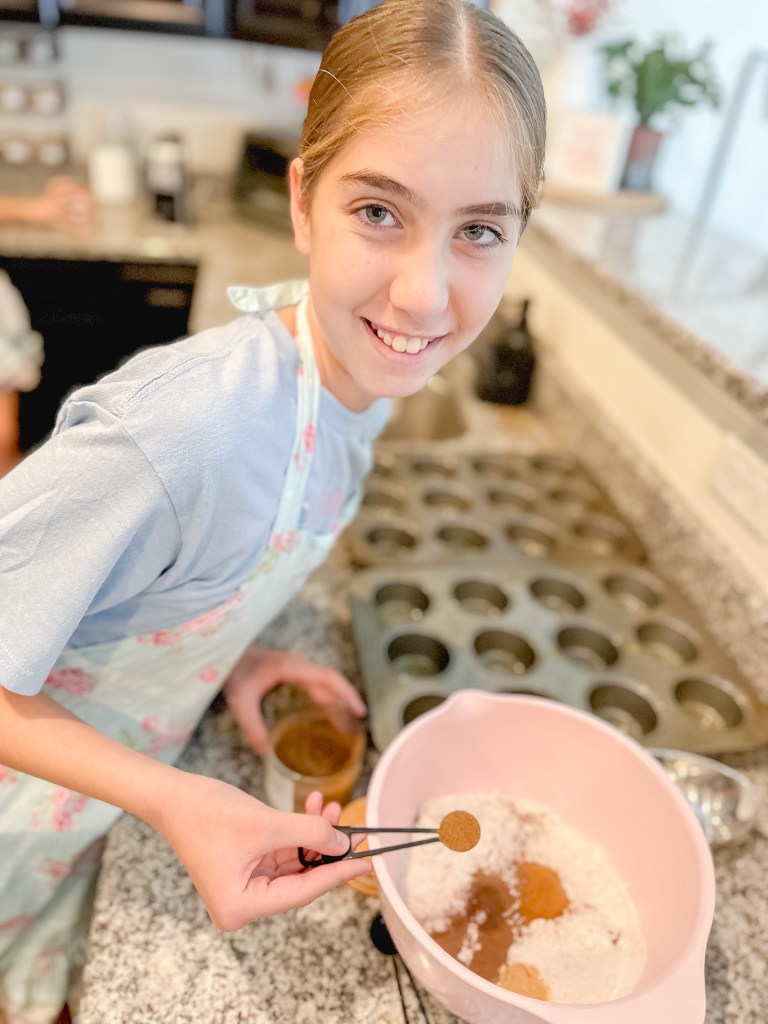 It looks like we had such a good time, and we did. The muffins were yummy, but that was after the arguing, shoving, and crying. Someone is determined to get to use the can opener to open the canned pumpkin and someone decides to take that over…Grabby hands almost knock over the bowl of dry ingredients, and one is off doing ballet in the middle of the floor…Life.