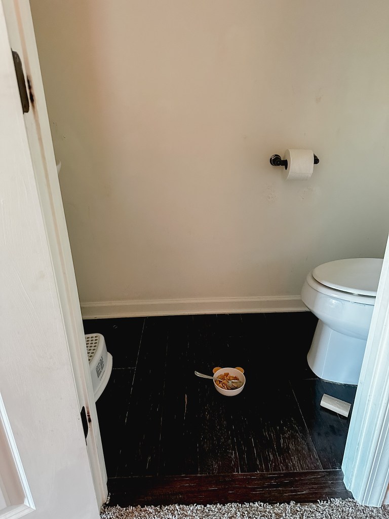 Pic(k) of the day: This morning, I walked downstairs to this after someone yelled that Krew was eating cereal in the bathroom…I have never witnessed this…now I have…