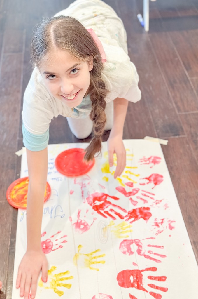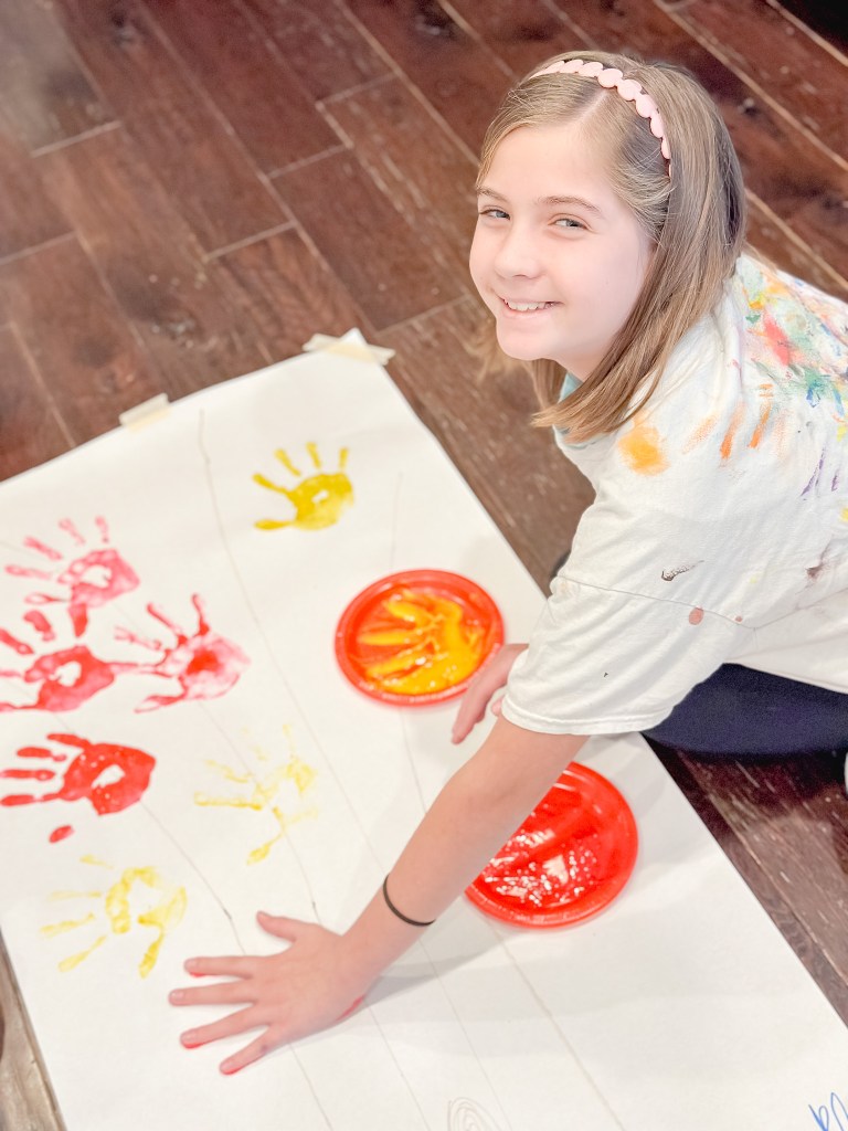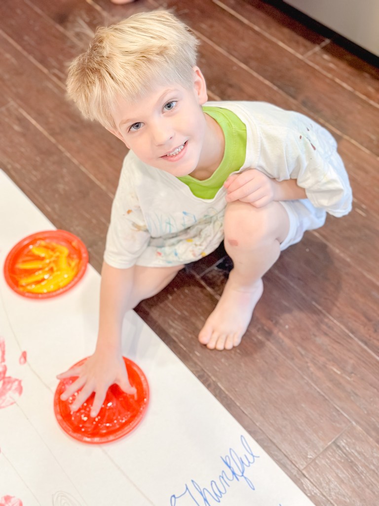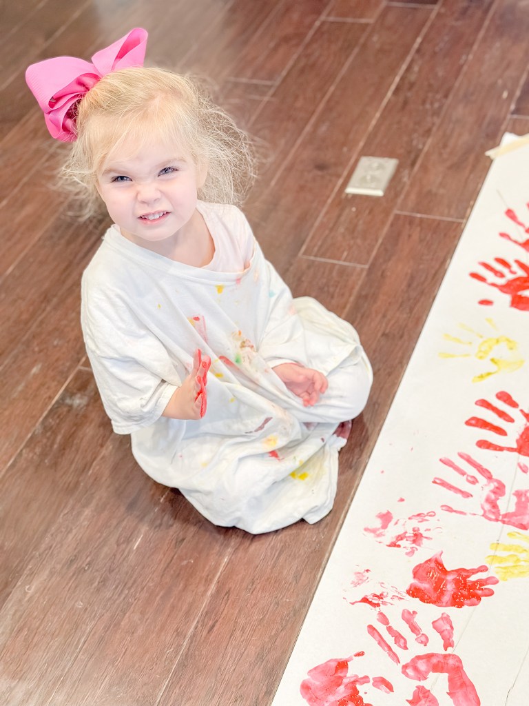 It was freeing to limit it to two colors, only take one photo of each kid, dip Maddox’s feet instead of hands, which is easier to clean off with a baby wipe.